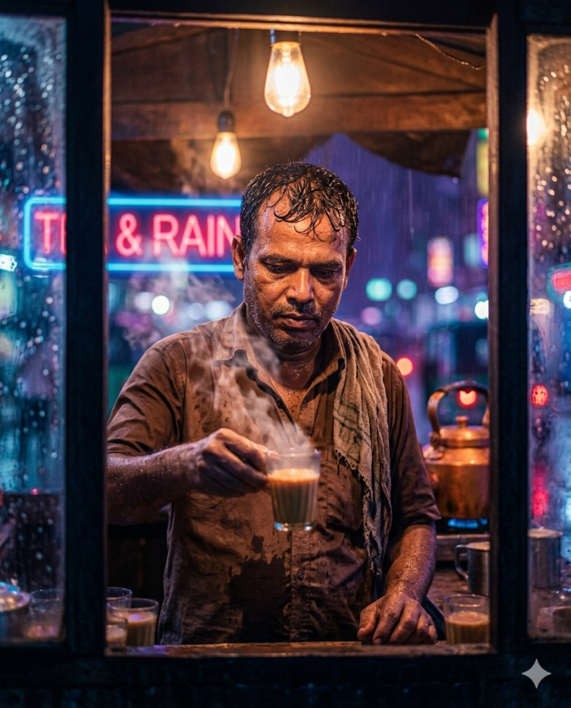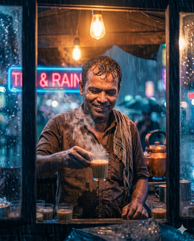 Rainy streets and hot tea create one of the most cinematic and emotional atmospheres you can capture with AI. From glowing street lights reflecting on wet roads to the comforting steam rising from a fresh cup of chai, these scenes are perfect for creating viral, aesthetic visuals using Google Gemini. Whether you love urban photography or cozy storytelling visuals, rainy tea stalls offer a perfect blend of mood, culture, and realism.