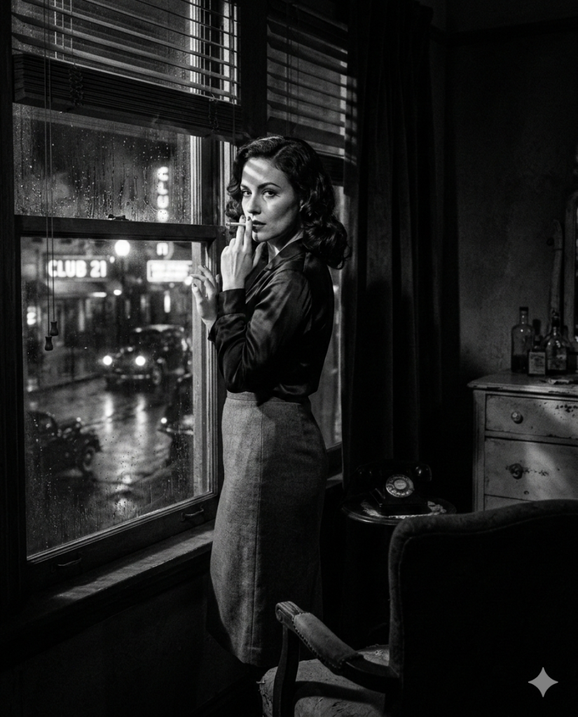 With tools like Google Gemini, creators can now generate powerful noir-style visuals that look like they belong in an old Hollywood detective film. By carefully describing lighting, wardrobe, camera angle, and environment, AI can recreate scenes from the golden age of crime cinema.